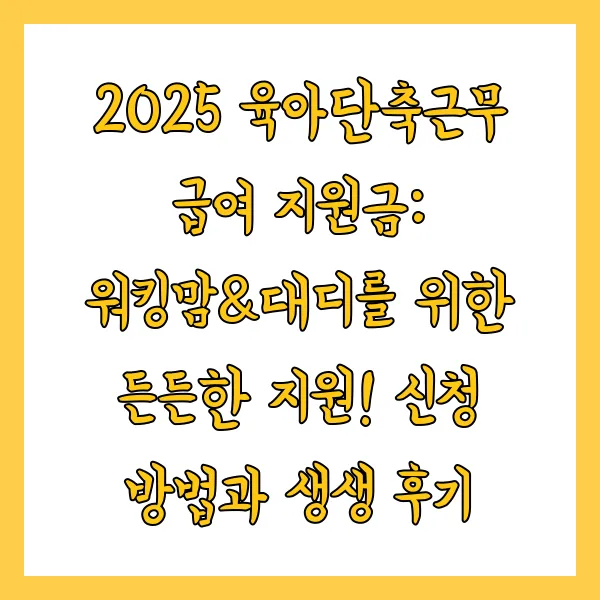 2025 육아단축근무 급여 지원금: 워킹맘&대디를 위한 든든한 지원! 신청 방법과 생생 후기