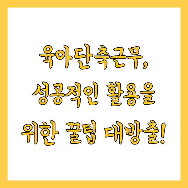 육아단축근무, 어떻게 하면 더욱 효과적으로 활용할 수 있을까요? 성공적인 육아단축근무를 위한 핵심 전략을 소개합니다.