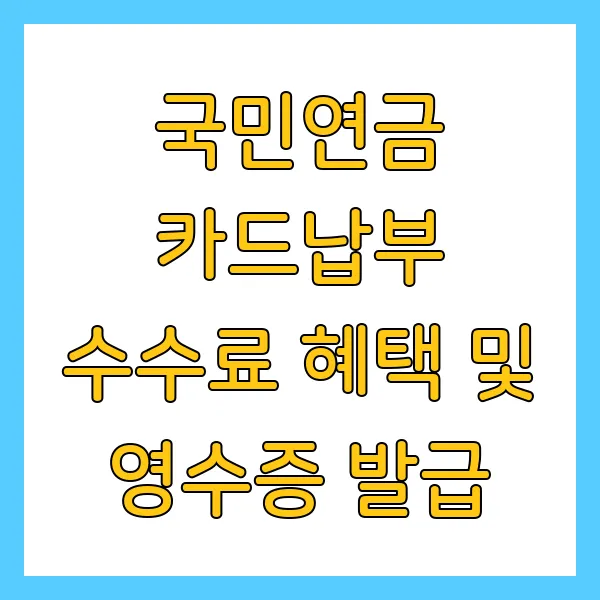 국민연금 납부, 이제 더 이상 어렵고 복잡하게 생각하지 마세요! 카드 납부의 편리함과 다양한 혜택을 누리면서, 나에게 딱 맞는 납부 방법을 찾아보세요! 스마트한 국민연금 생활, 지금 바로 시작하세요!