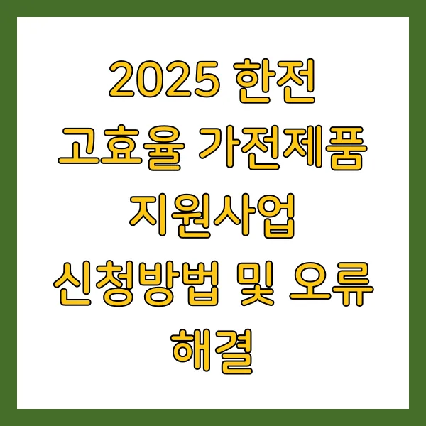2025년, 전기요금 폭탄 걱정은 이제 그만! 한전 고효율 가전제품 지원사업으로 가계 부담 덜고, 에너지도 절약하는 꿀팁 대방출합니다. 꼼꼼한 신청방법과 오류 해결 가이드까지, 지금 바로 확인하세요!